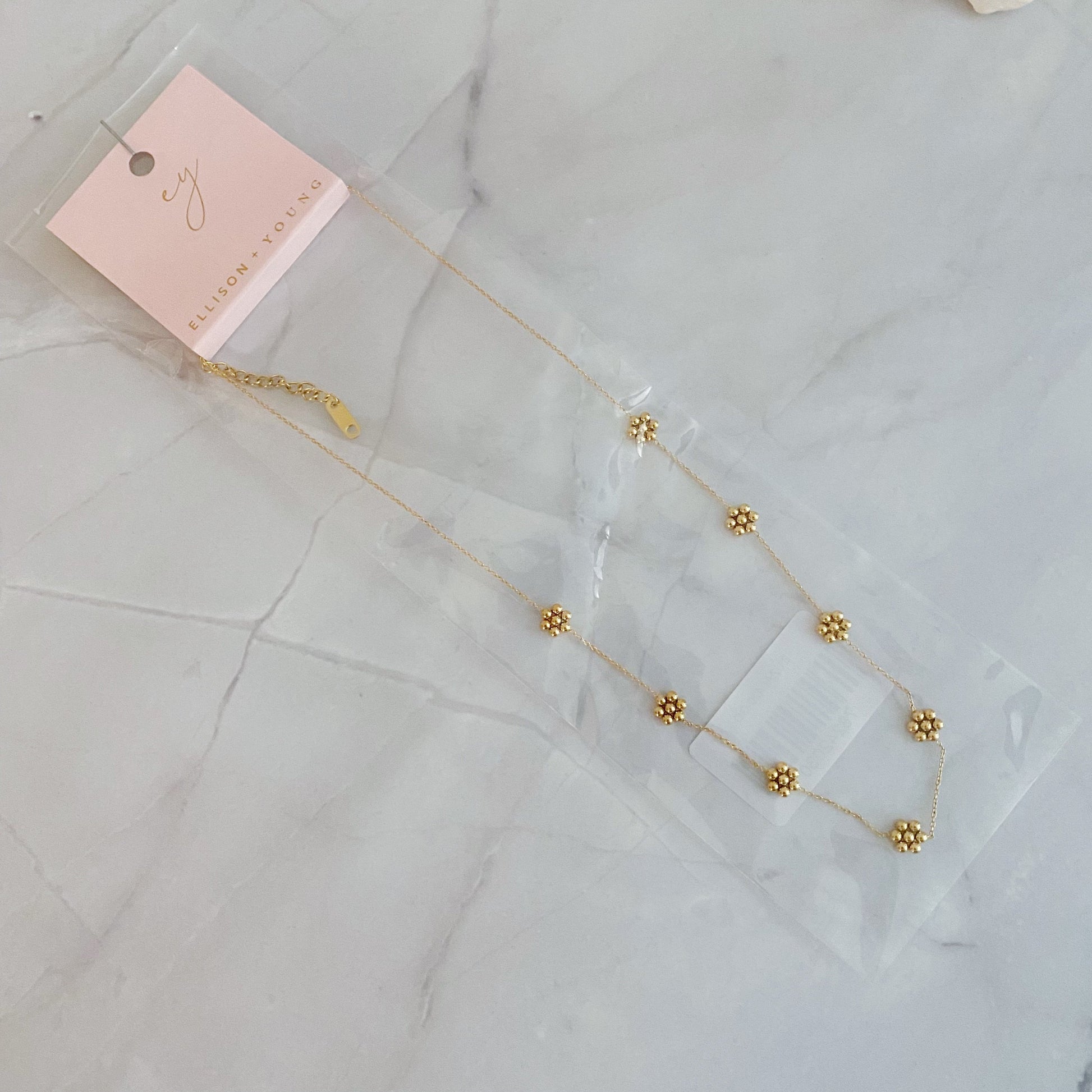 Dainty Golden Bead Flower Necklace