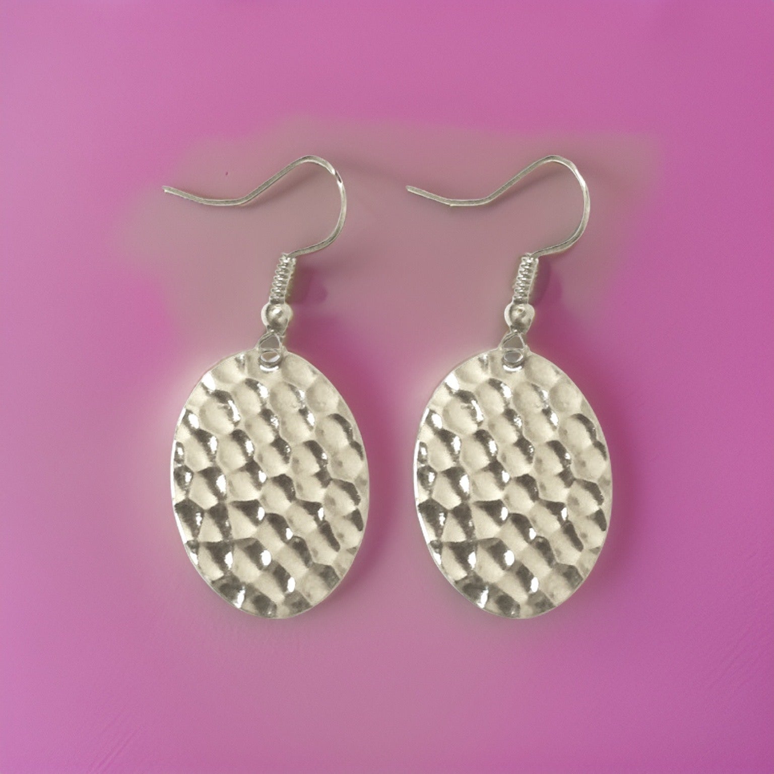Introducing the small flat oval dangle earrings featuring a hammered texture on a light weight earring. These beauties sparkle in any light and go great paired with just about any outfit. Dainty and simple earrings finished in 24k gold or silver.