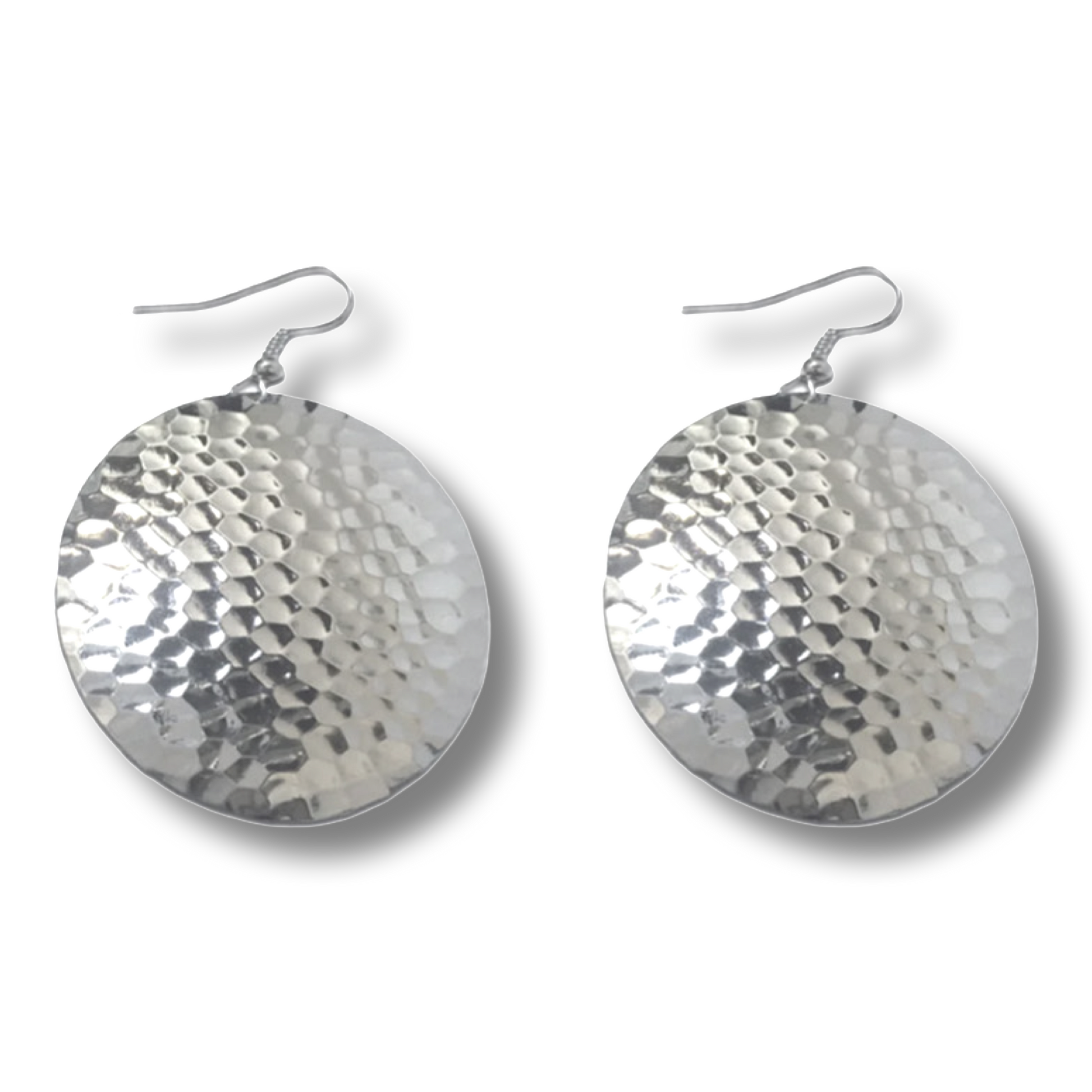 The Urban Charm circle domed dangle earrings feature a hammered textured and then are dipped in either 24k or silver. The are lightweight and can be worn with just about any outfit.